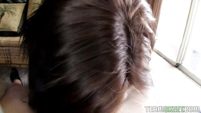 Beschreibung: I caught my girl Emma half dressed by the pool. It looked she was debating whether or not she was gonna jump in since she was missing the bottom half of her clothes already. I thought this was funny as fuck so I grabbed my camera to record her. She turned around and busted me and I convinced her to come in and suck my dick on camera! Yo this tiny, thin, fiery redhead still packs a nice ass that she twerked for me before I ran through it. I got so deep up in them guts I thought I was gonna break this tiny chick in half! Her pussy is just as tight as the rest of her miniscule frame and I busted 10 nuts worth or jizz all over her stomach and clam. She even licked it up after.