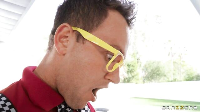 Beschreibung: Sexy MILF Mrs Robinson is trying to chat with her husband over dinner, but he's just not listening and has his eyes on his phone. Luckily, there's another man around, who seems a lot more interested in her; mysterious nerd window washer Van Wylde. Mrs Robinson starts teasing the nerd by flashing her tits and pussy at him, all under her husband's nose. When her husband finishes eating and leaves the room, Mrs Robinson opens the patio door and gives Van a proper greeting. She lets him inside to suck and fuck him... after all, her husband will never notice.