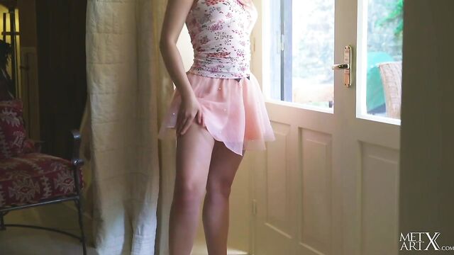 Beschreibung: Adorable Lucretia K may find it hard to paint when she's bored, but it's impossible to concentrate on her work when she's wearing such a short skirt and she's bending down to apply brushstrokes to the canvas. Her peachy ass is mesmerizing. Her panties split her cheeks, snaking down between them to cup her pussy snugly. Such a sight makes you wish she'd never stop painting, but then the time comes and she drops her brush and makes her way inside. In front of the windows, she pulls off her top, her sweet titties bouncing as they come free. At last, she pulls down her skirt and runs her fingers over her pussy, feeling her sex through her panties. Leaning against the wall, thrusting her ass out, she pulls her underwear down around her thighs and her fingers delve between her pussy lips, grinding over her clit, her eyes lingering over her shoulder. She sits with her legs spread wide apart, and sinks two fingers inside her tight, shaved pussy, masturbating with wild desire.